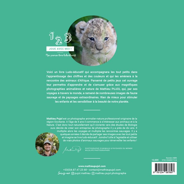 Parsemé de petits jeux cet ouvrage leur permettra d’apprendre et de s’amuser grâce aux magnifiques photographies animalières et nature de Mathieu PUJOL qui, par ses voyages à travers le monde, a ramené de nombreuses images de faune sauvage et de paysages extraordinaires. Rien de mieux pour stimuler les enfants et les sensibiliser à la beauté de notre planète.